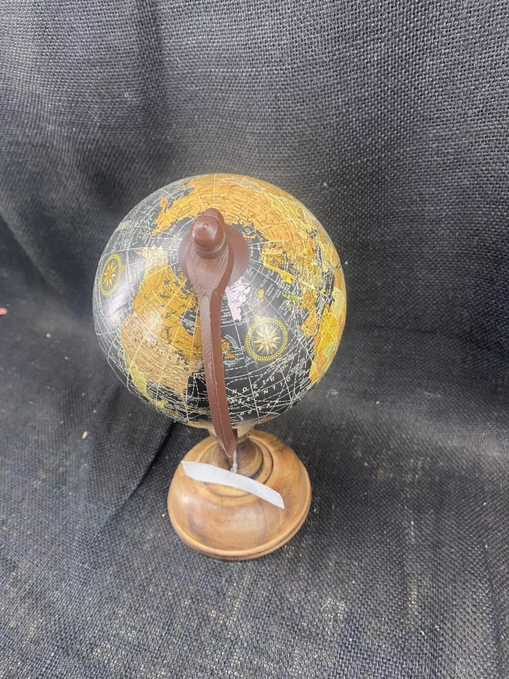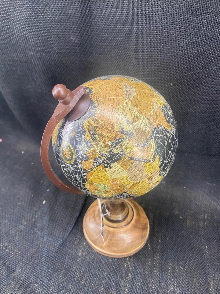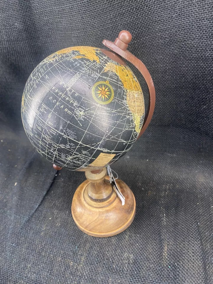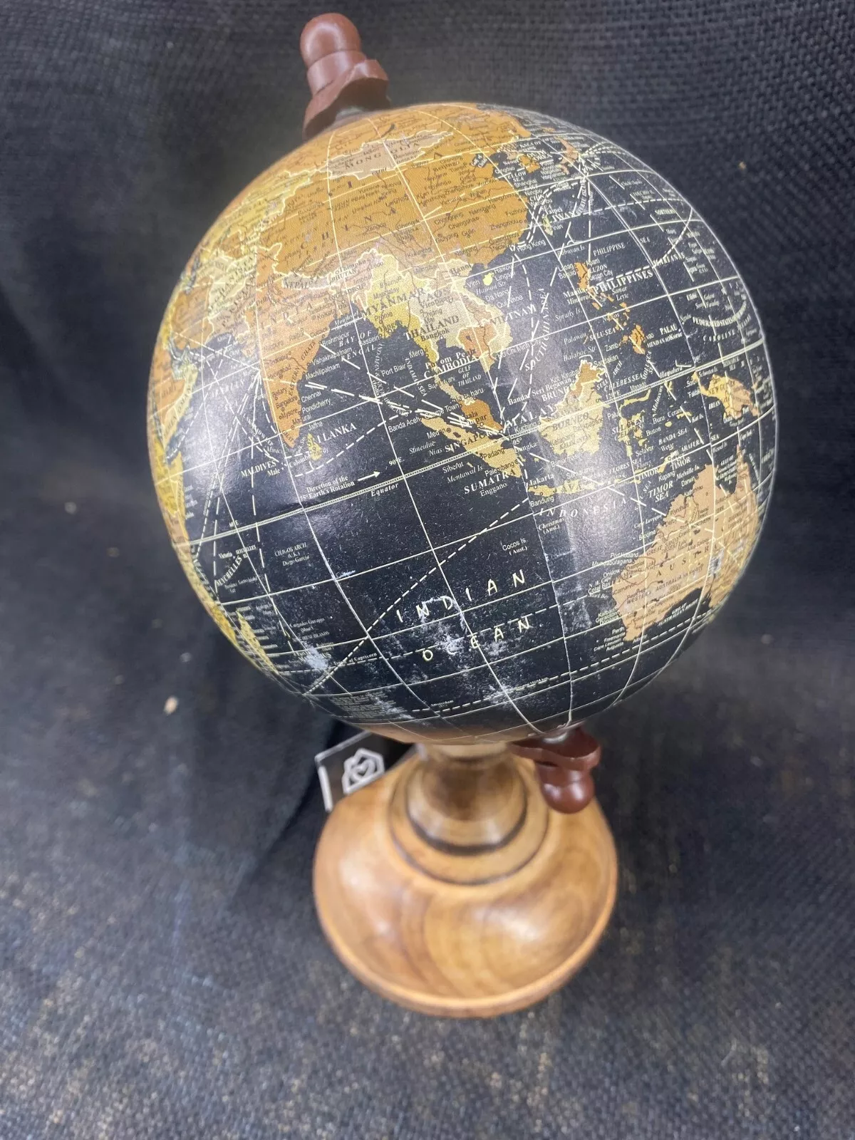 5″ diameter Antique Style, Dark Brown Wood Base Desktop Globe – NEW