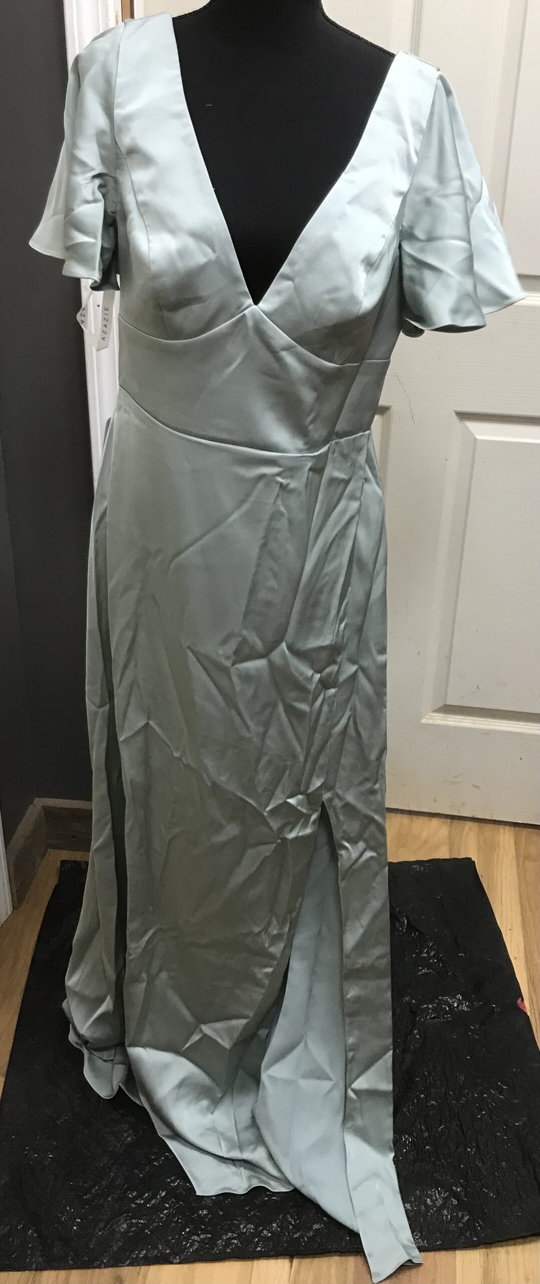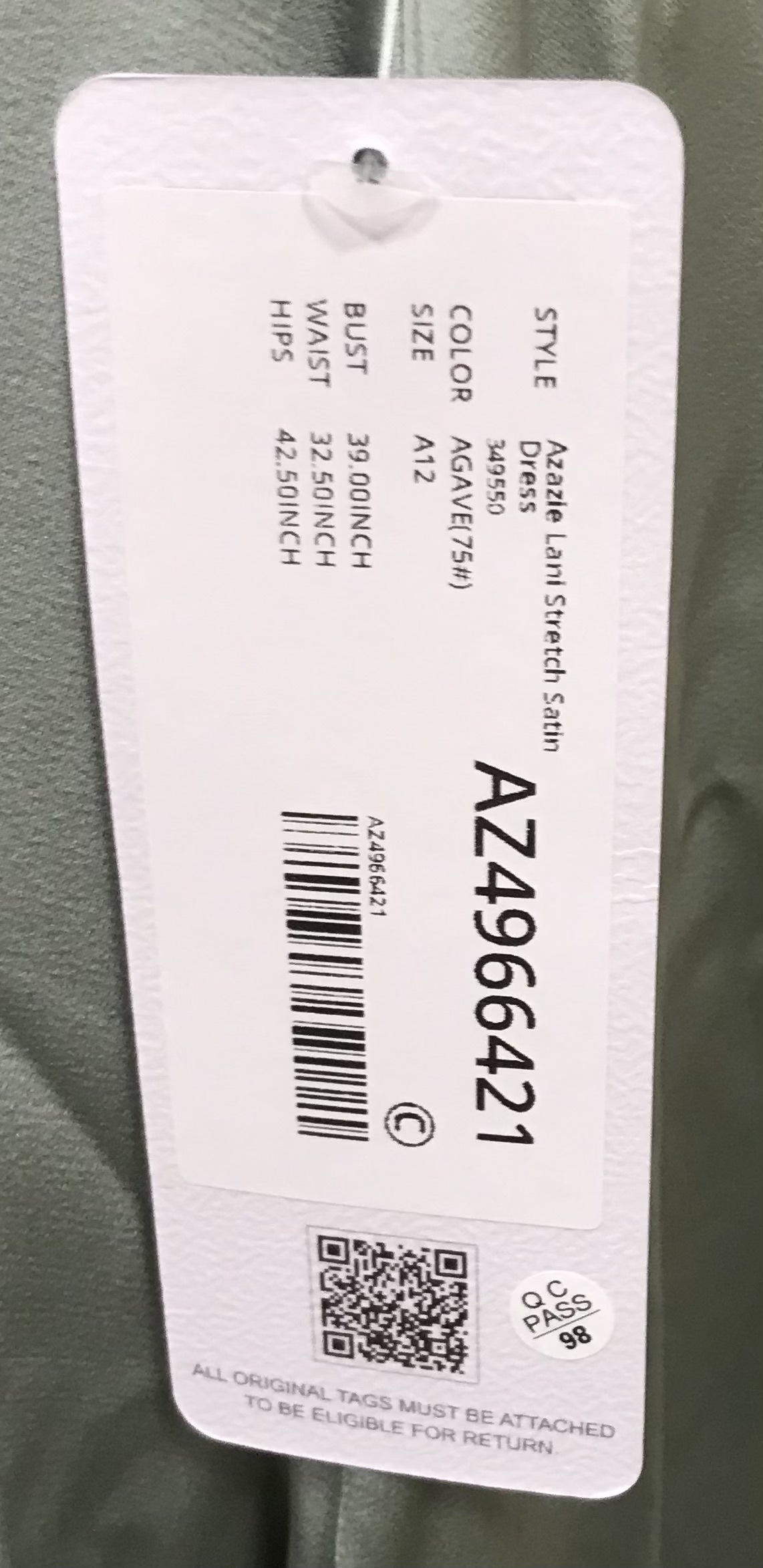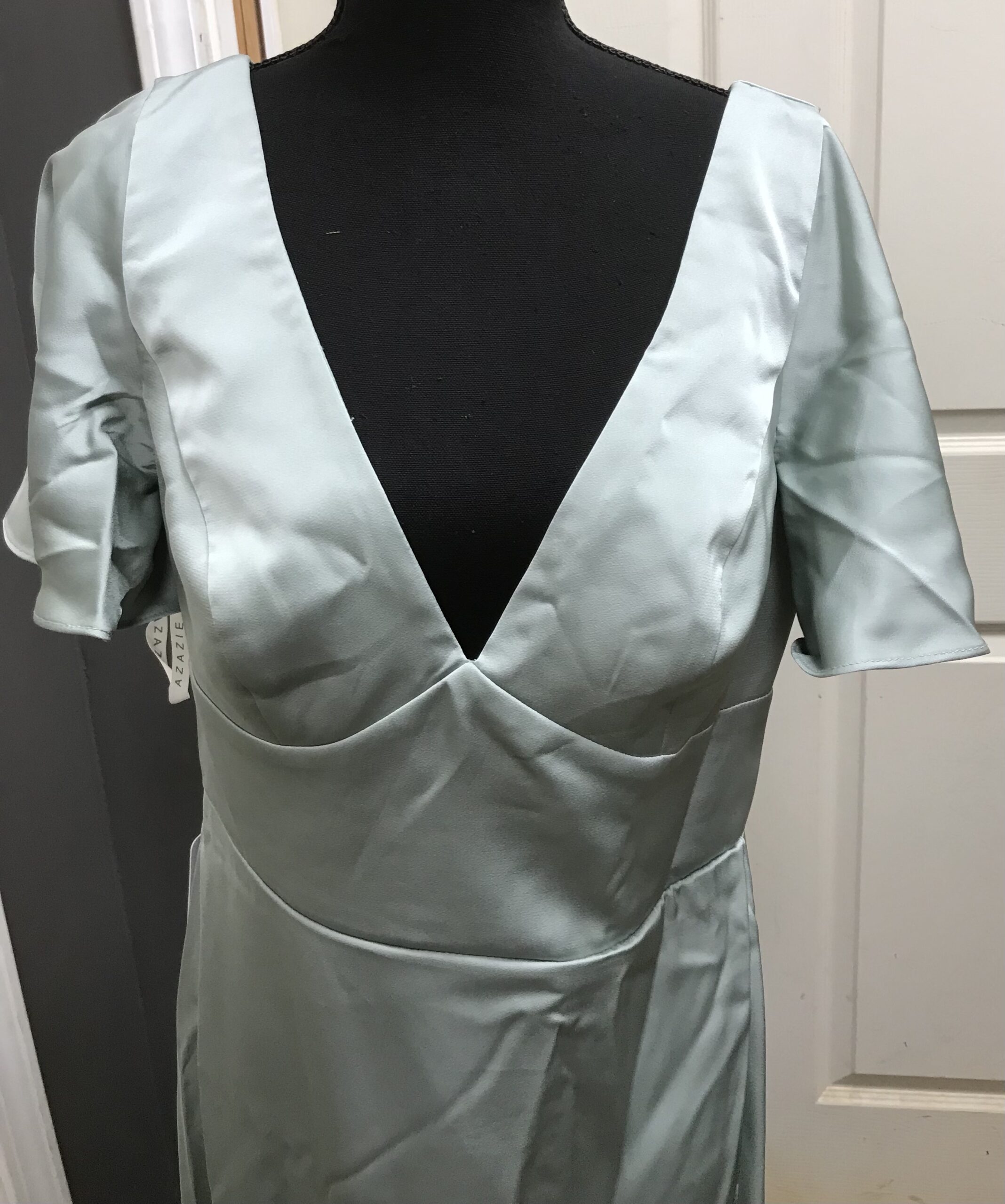 Azazie Lani Agave Light Green Stretch Satin Dress Sz A12 – NEW