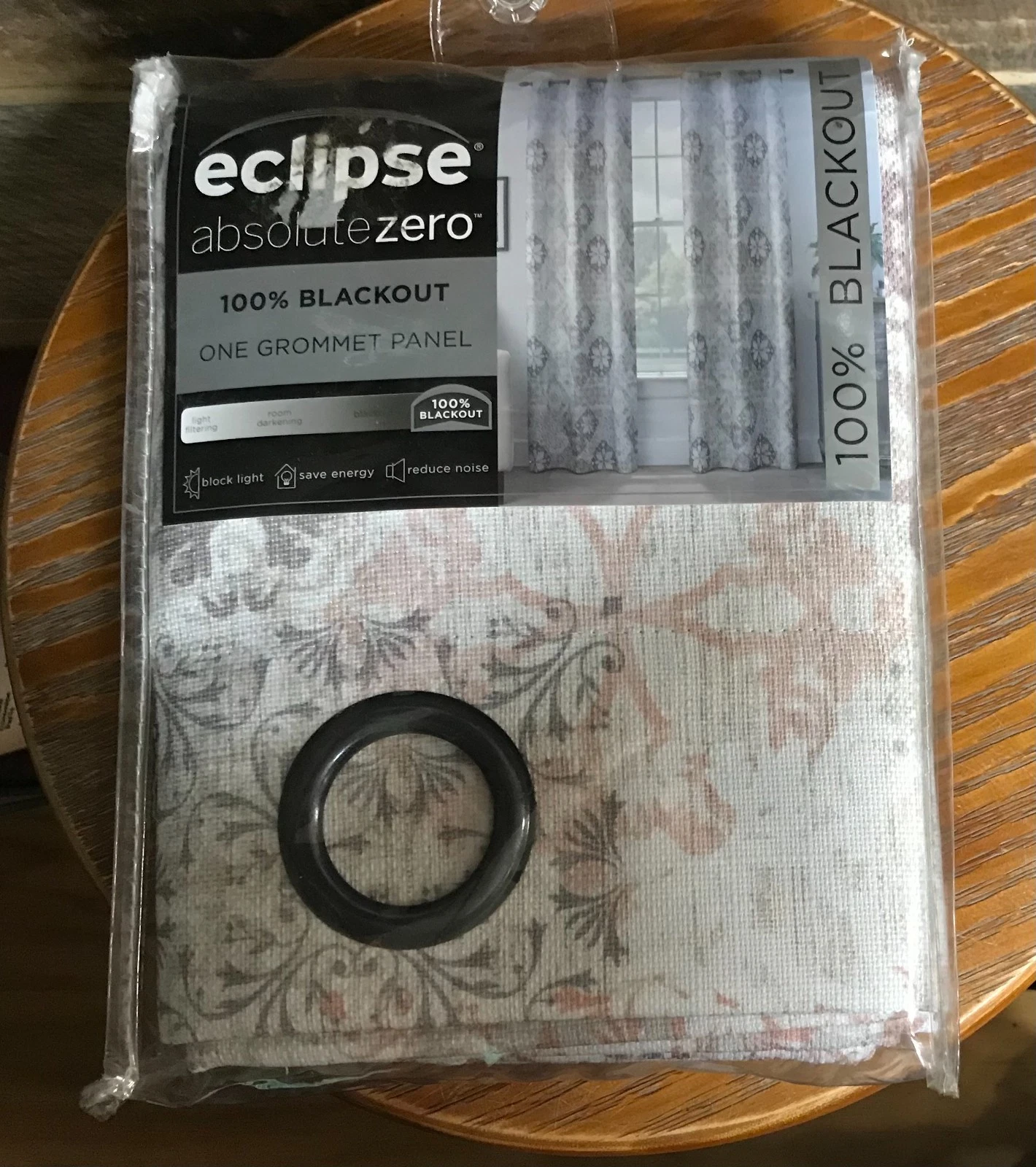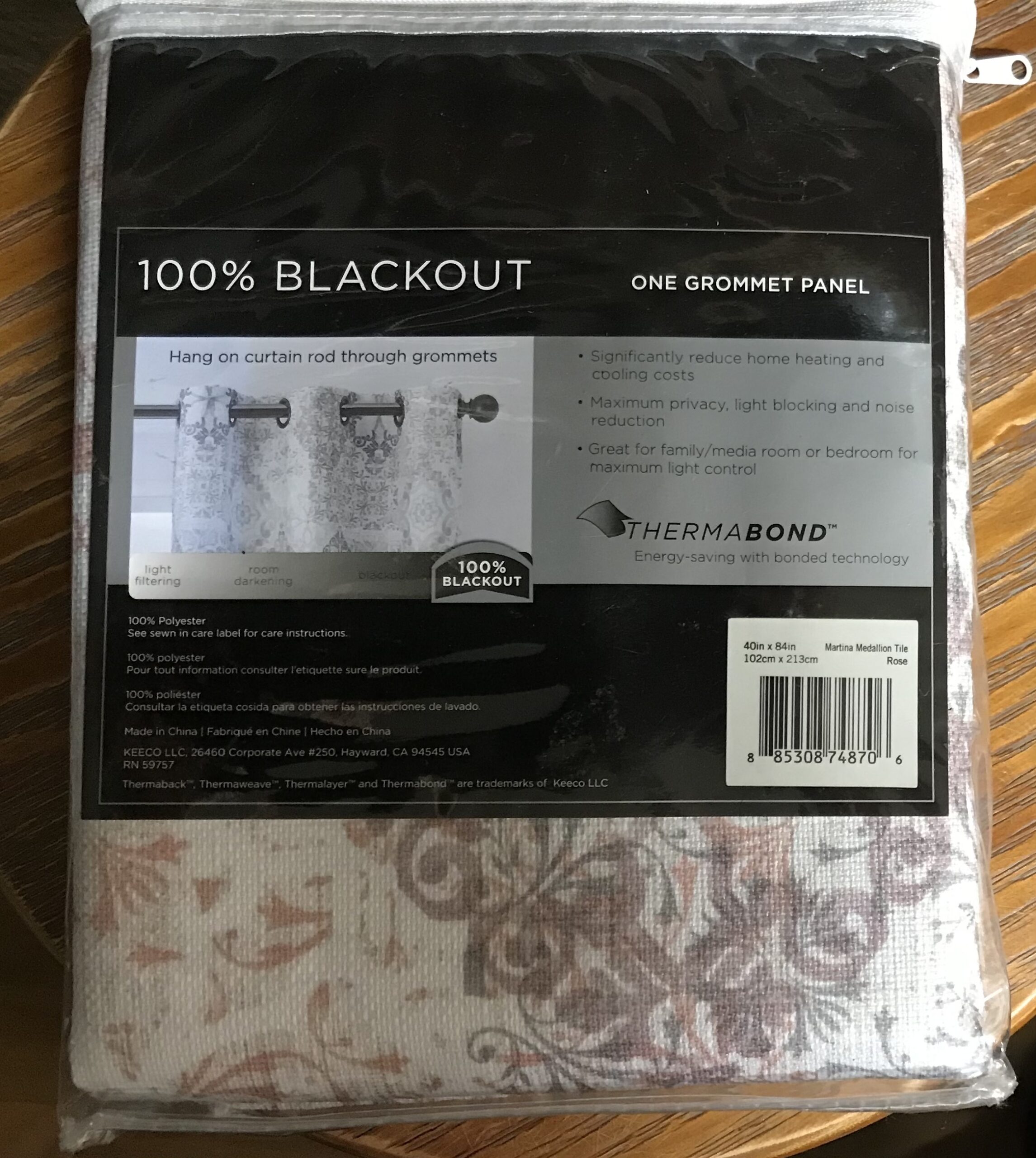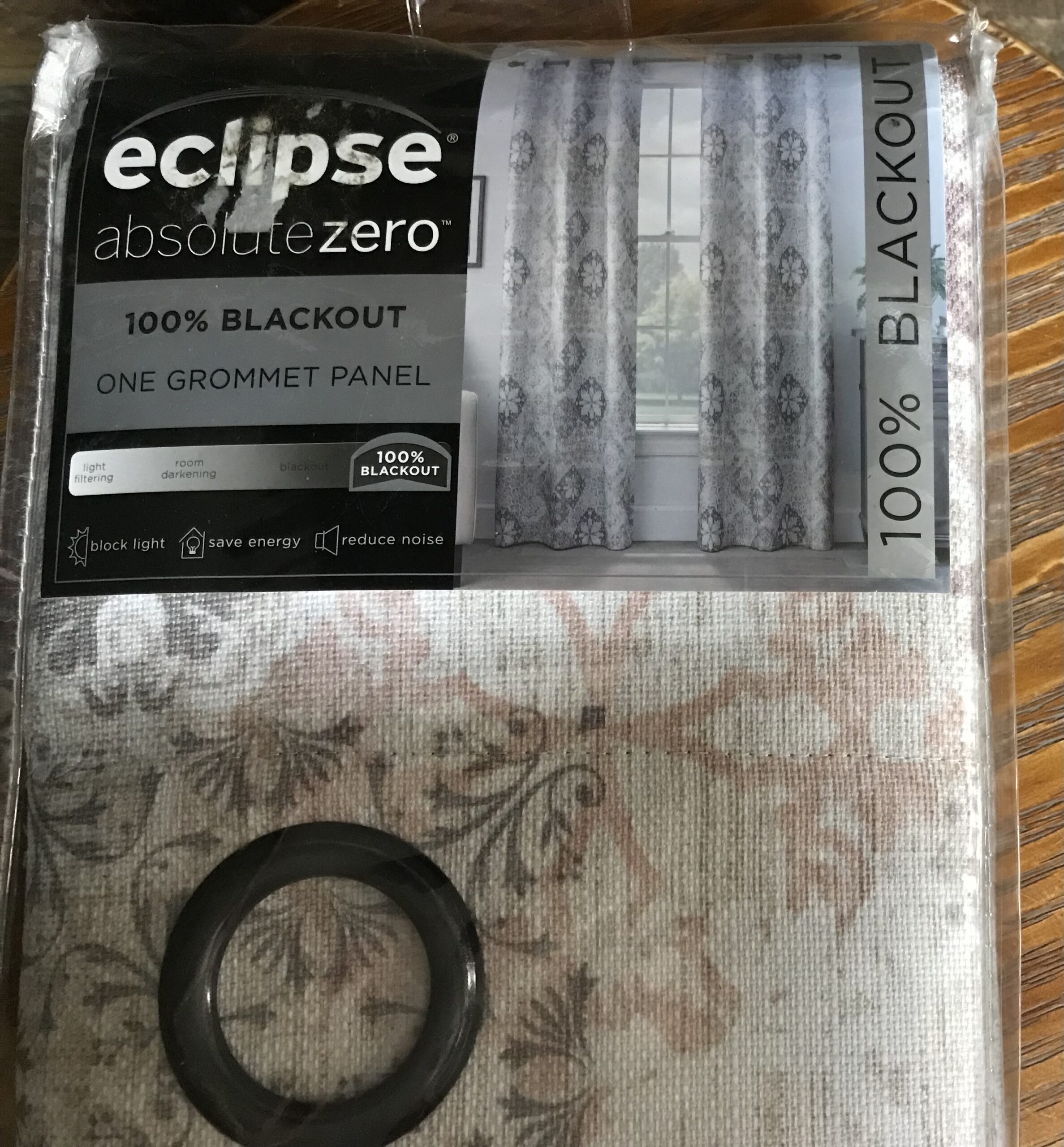 Elevate your décor and comfort with this new, sealed Eclipse Absolute Zero curtain panel. The Thermabond™ foam backing enables total blackout, energy efficiency, and sound reduction—all in an elegant rose medallion design.