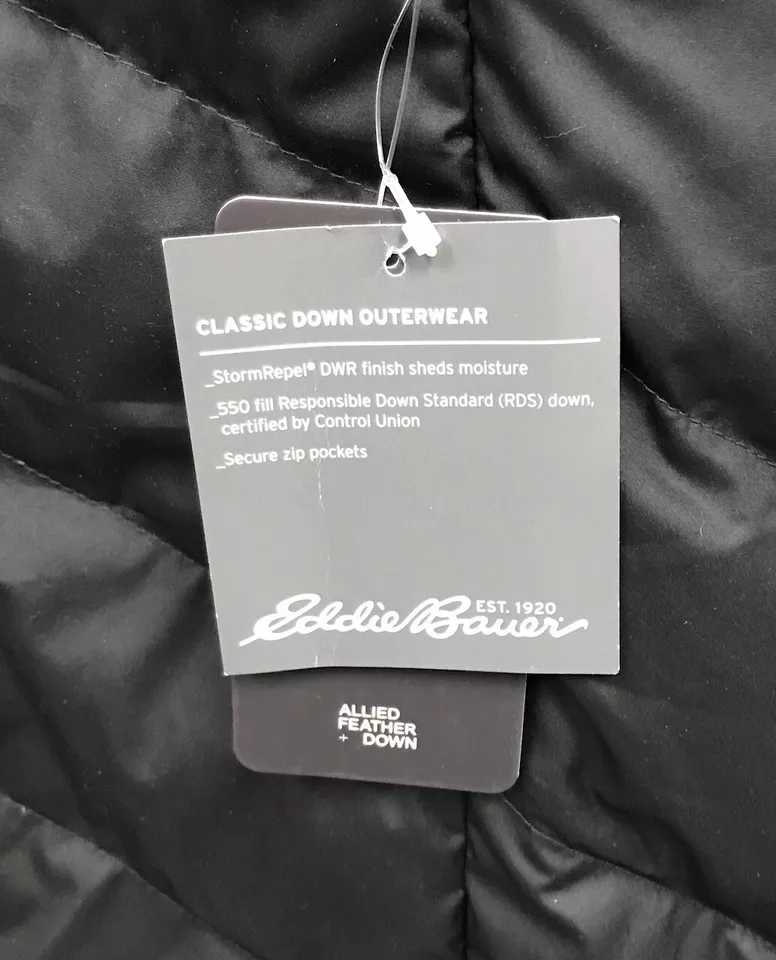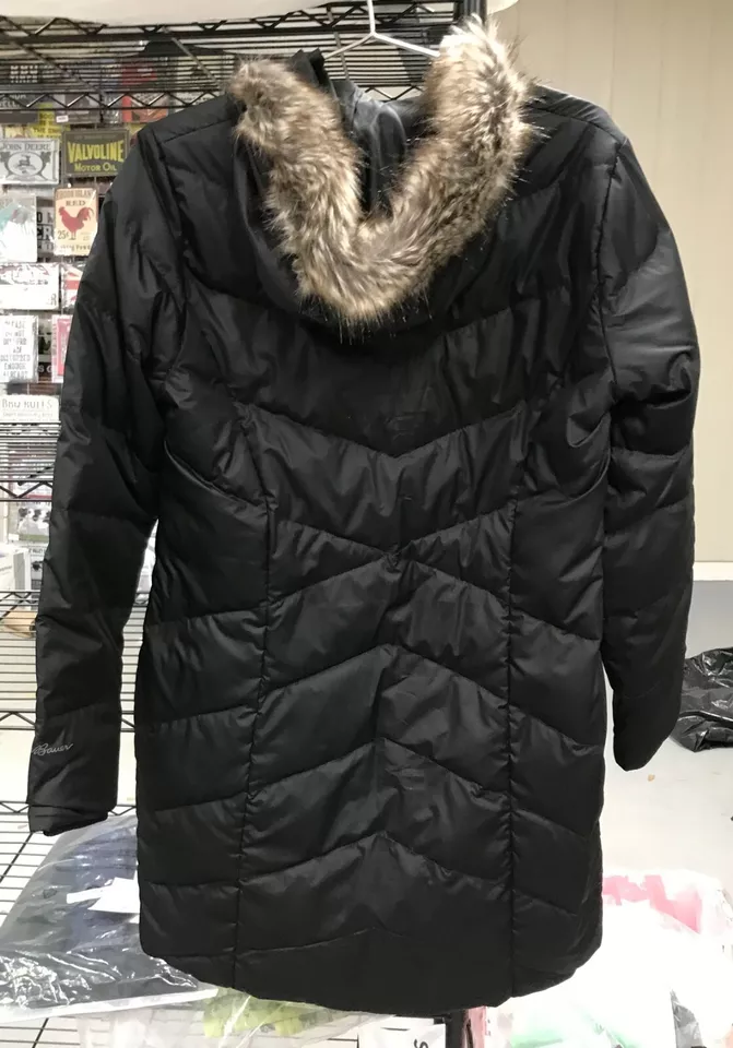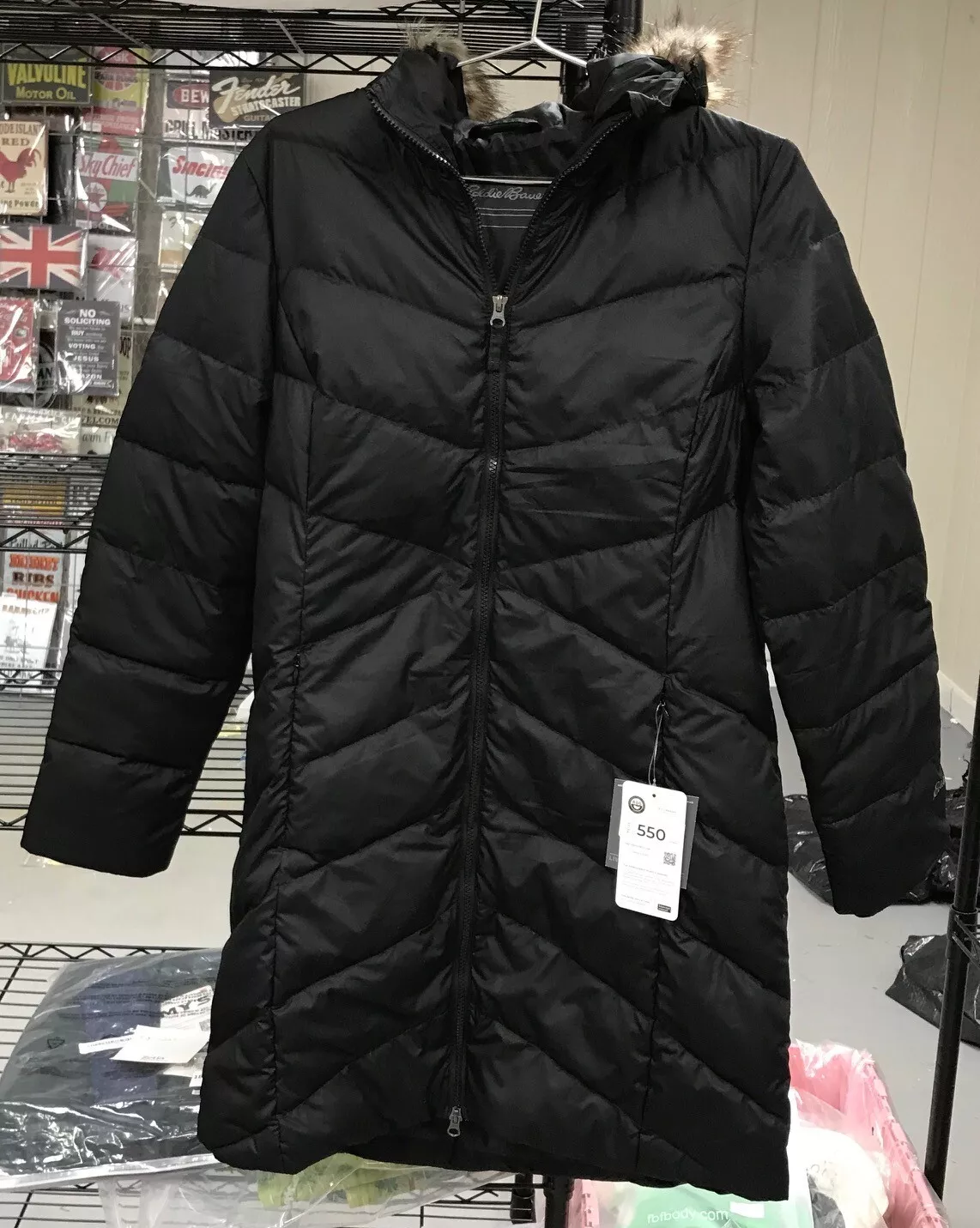 Eddie Bauer Classic Feather Down Parka Hooded Black Coat Sz M NEW