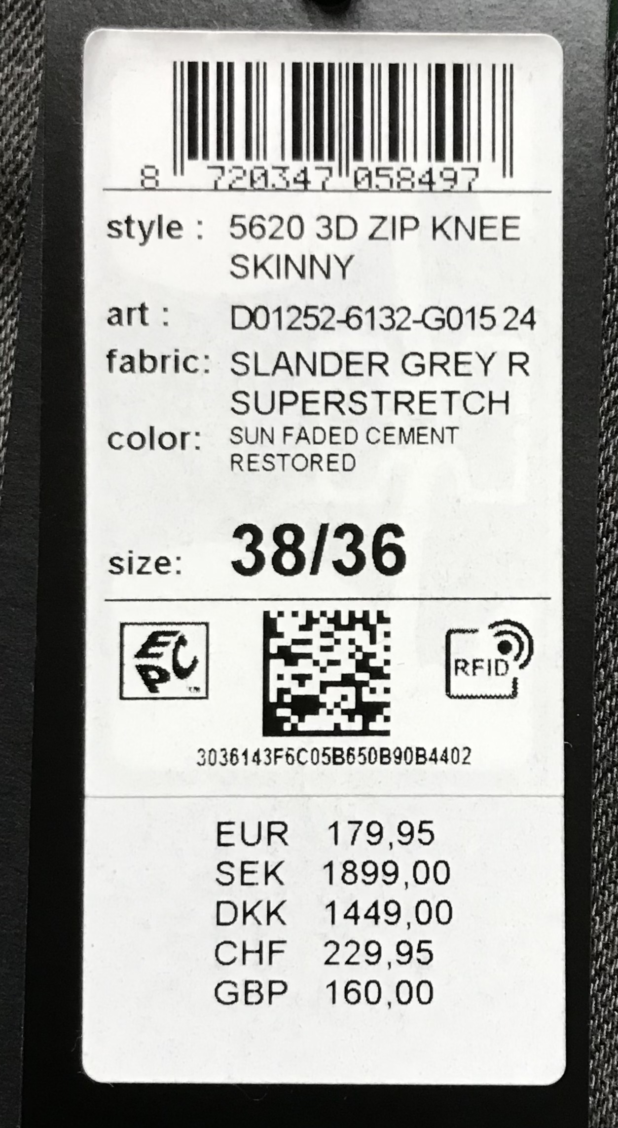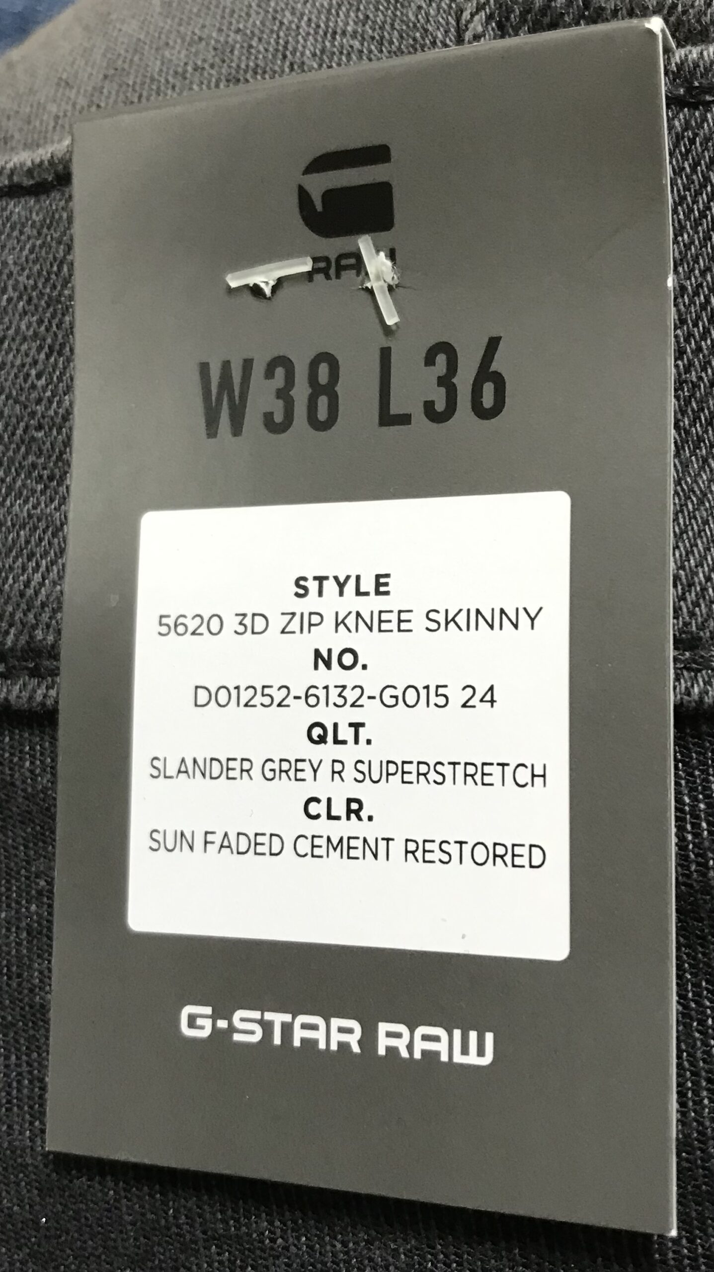 G-Star RAW 5620 3D Zip Knee Skinny Jeans 38×36 Sunfaded Cement NEW