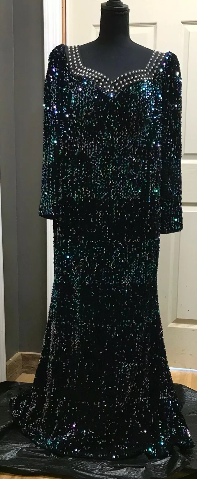 Giffniseti Pap 22 Raccolta Carta Black Dress Sequins Long Sleeve Studded Neck