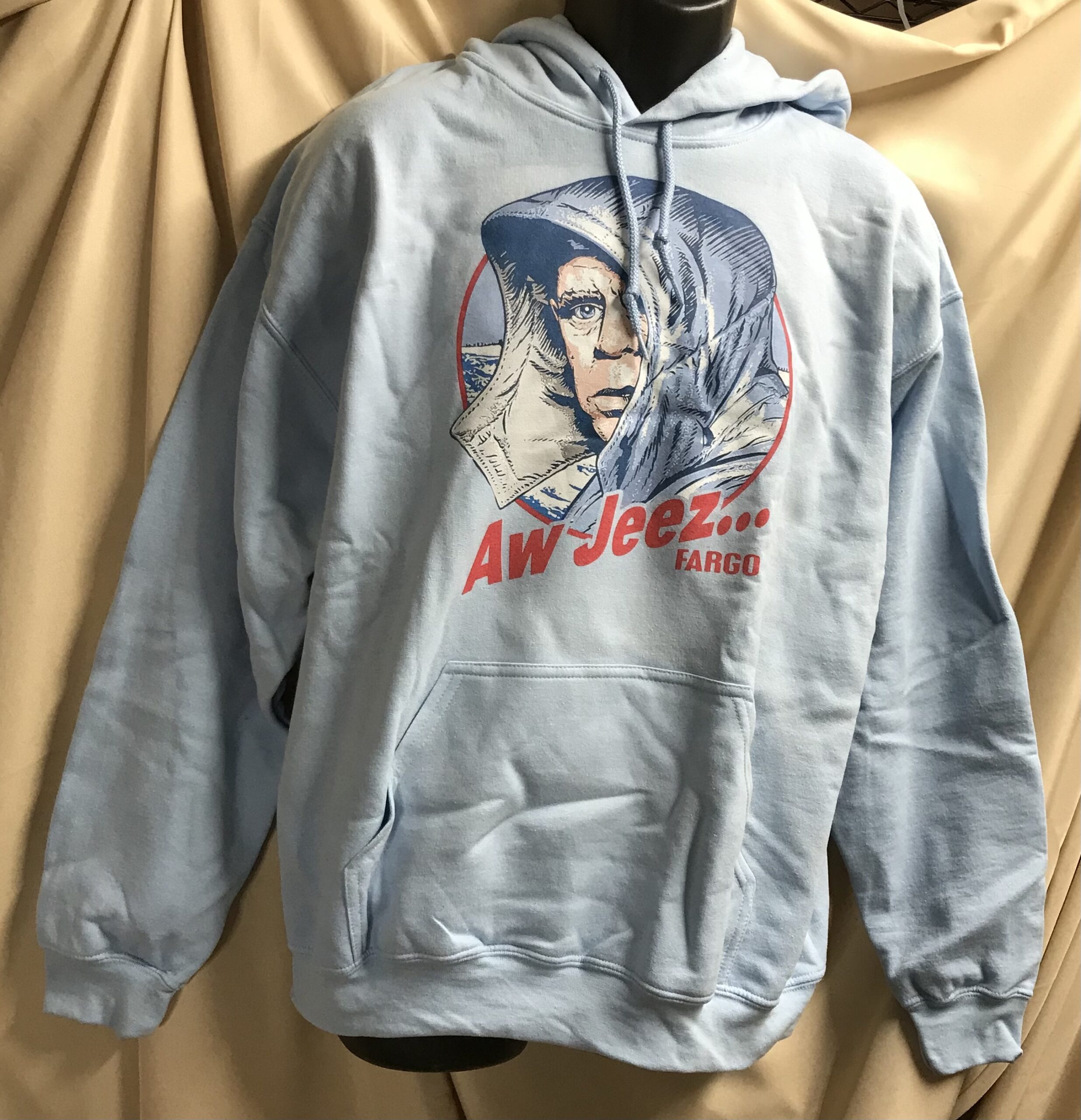 Gildan Heavy Blend Hoodie “Aw-Jeez…Fargo” Light Blue Sz L – NEW
