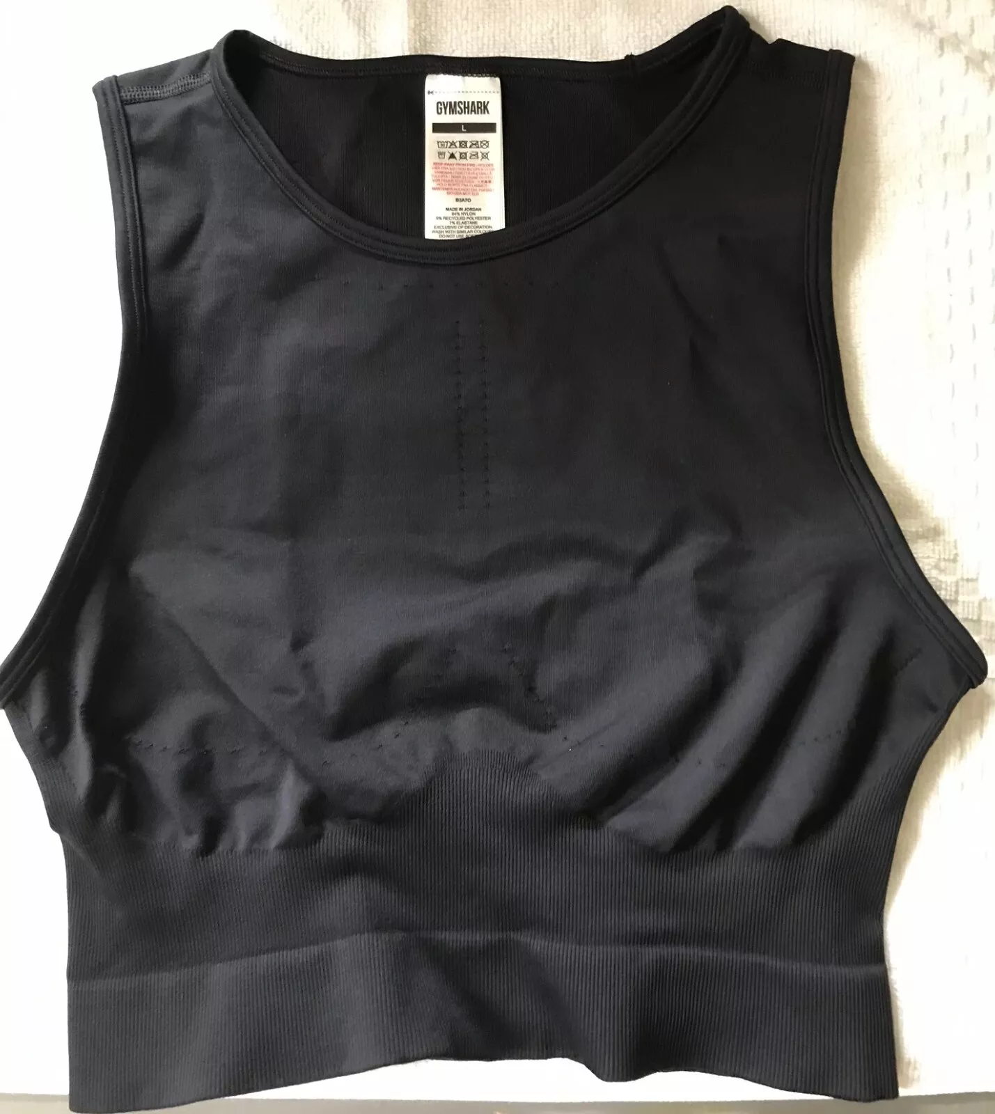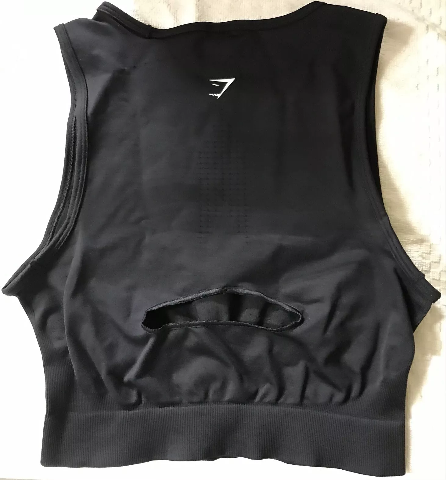 Gymshark Black Sleeveless Round Neck Cropped Shirt Midi Tank Sz L NEW