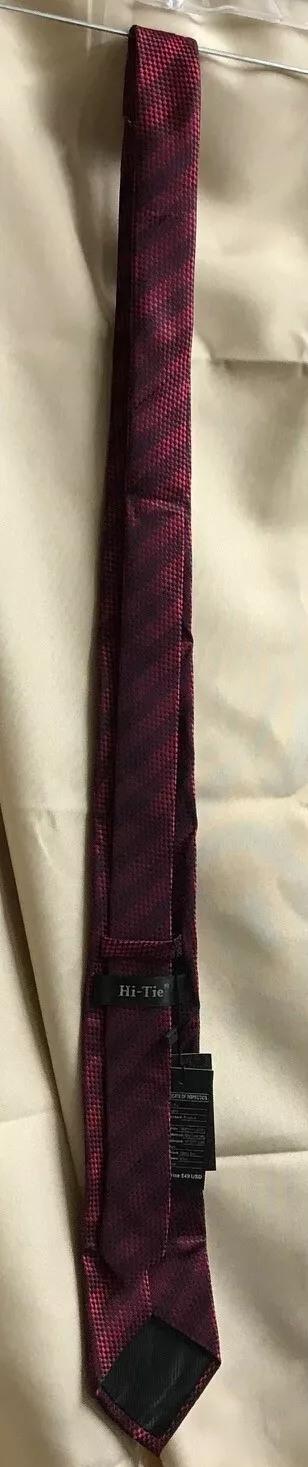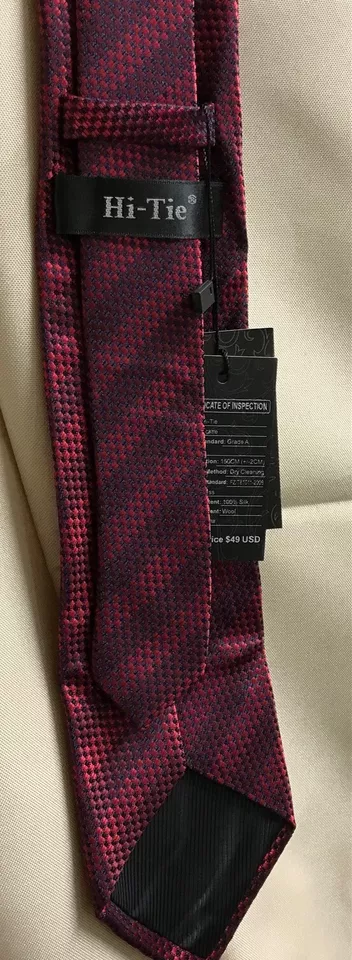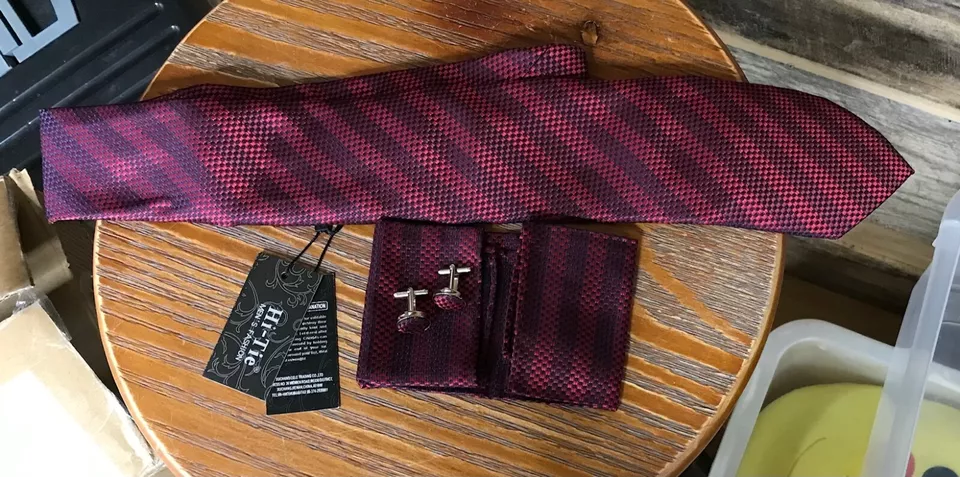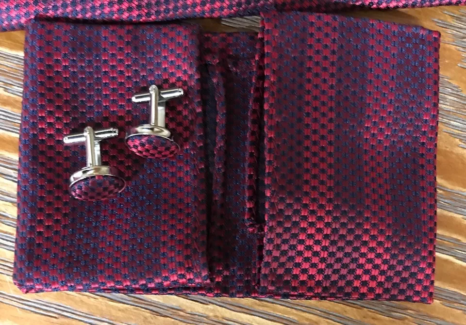 HI-Tie Necktie Red/Burgundy with Hankerchief & Cufflinks NEW