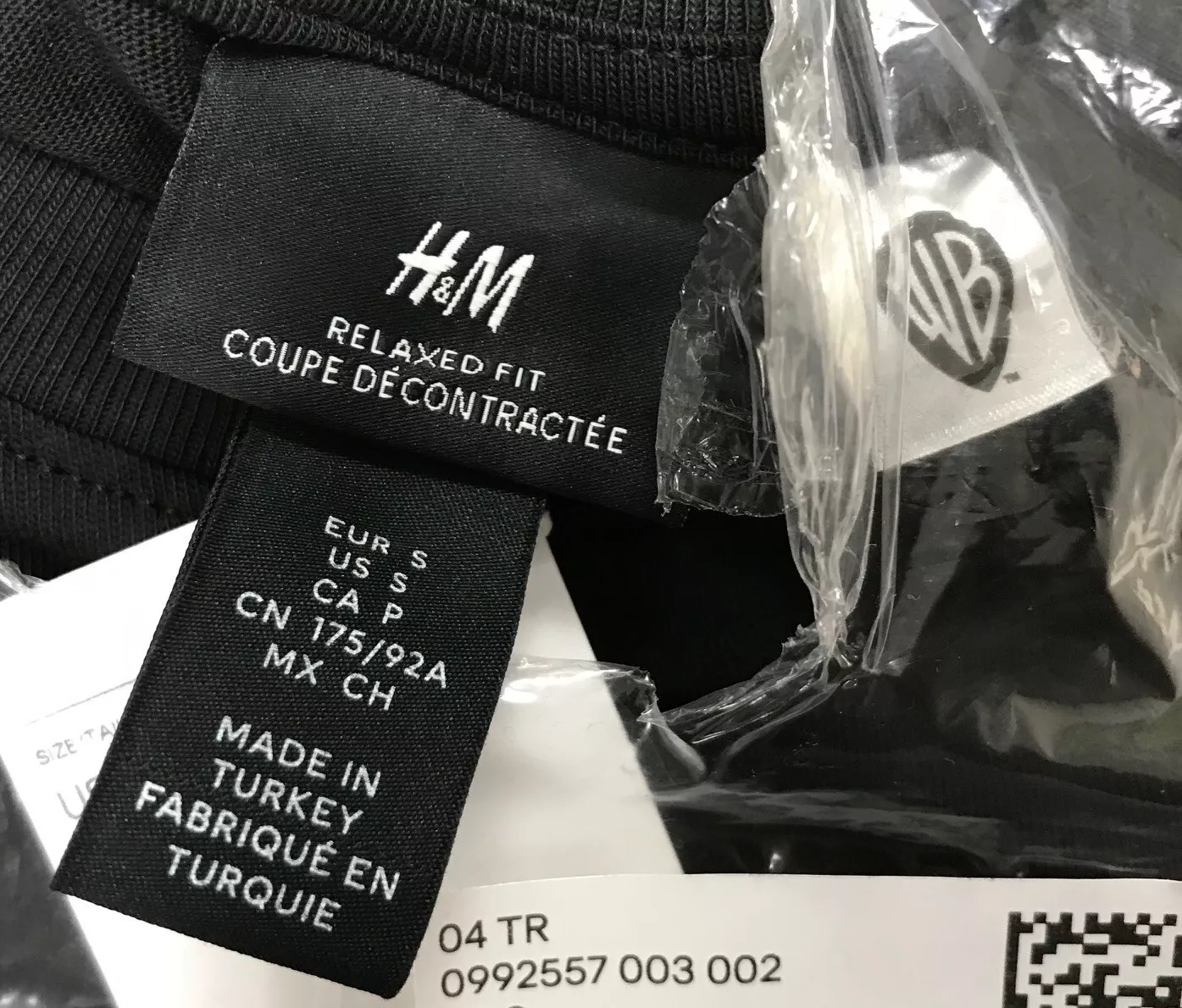 H&M Relaxed Fit Warner Brothers WB Sz S Black W/Tom & Jerry Graphic NEW