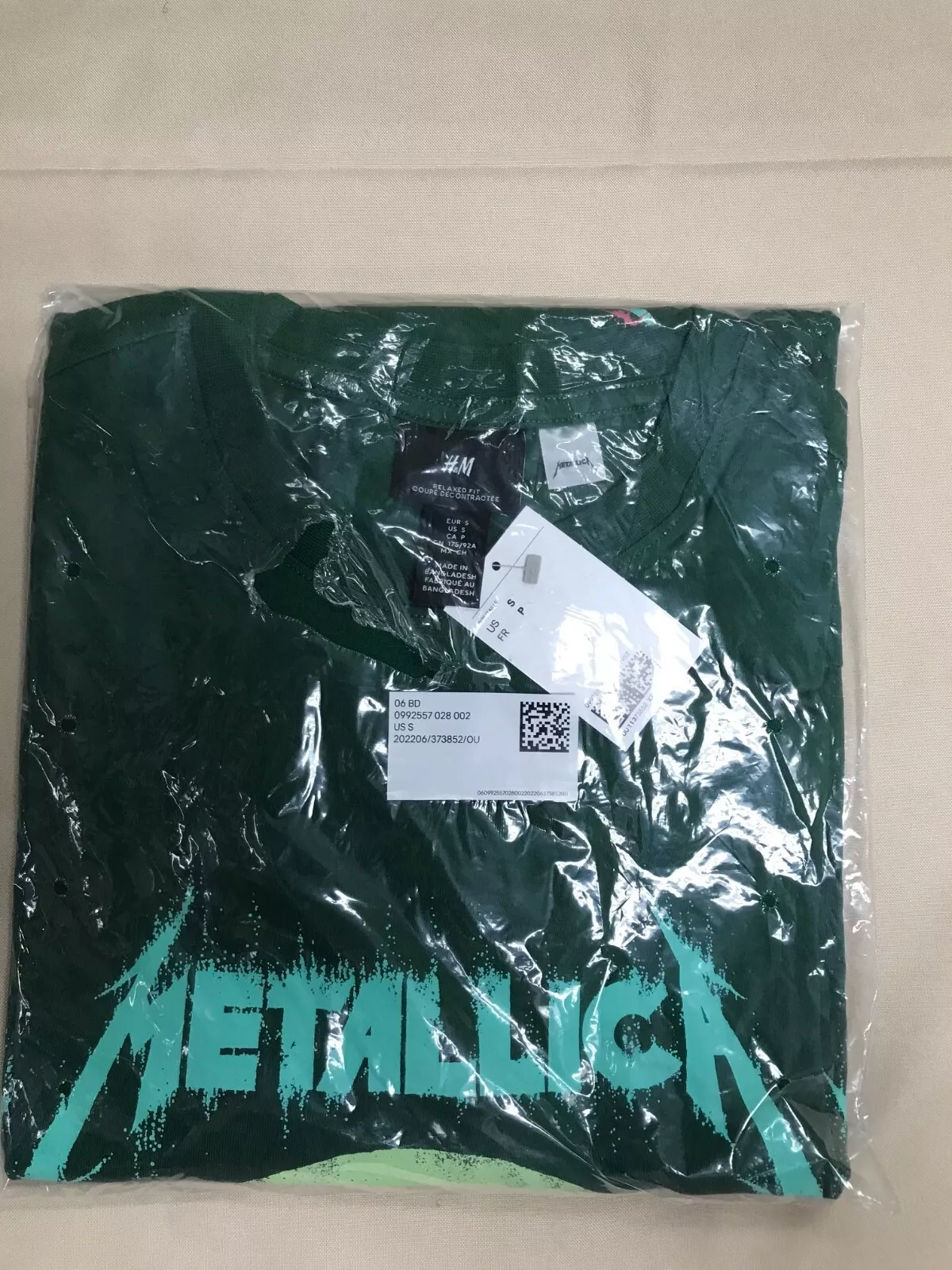 H&M T-Shirt Forest Green Relaxed Fit Sz S Metallic NEW