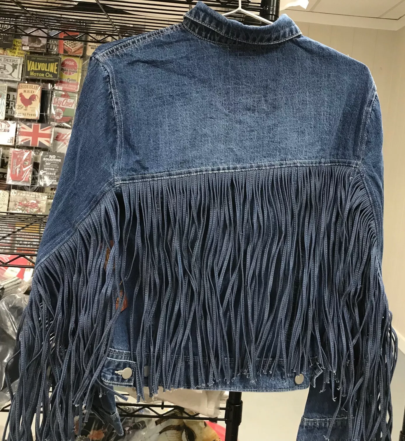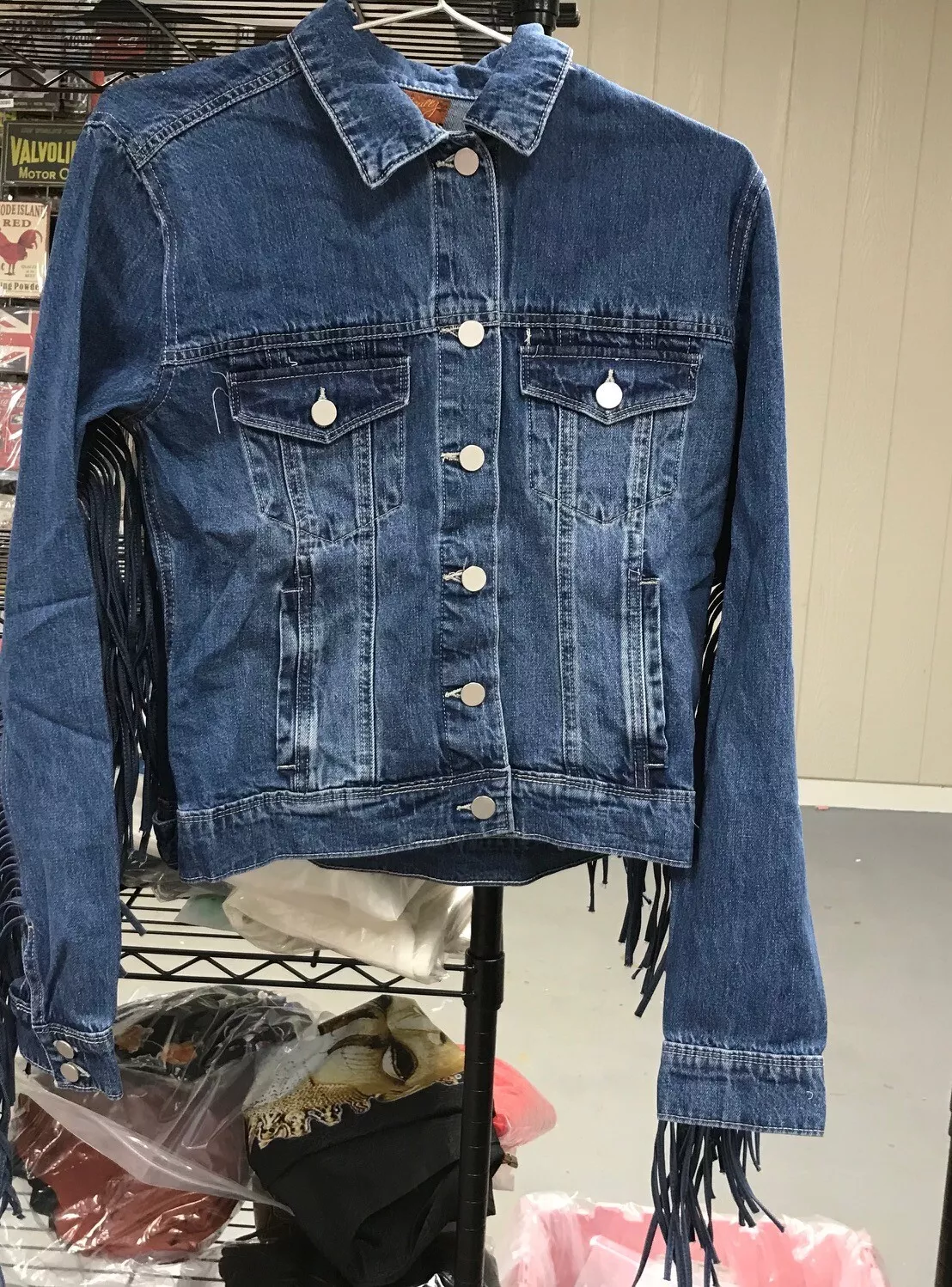 Honey Creek by Scully Button Up Denim Jacket with Fringe Sz S HC711 NEW