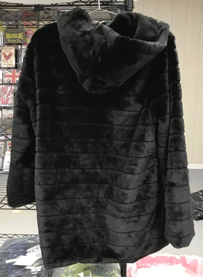 OIYE Faux Fur Black Polyester Coat Hooded Sz 3XL NEW