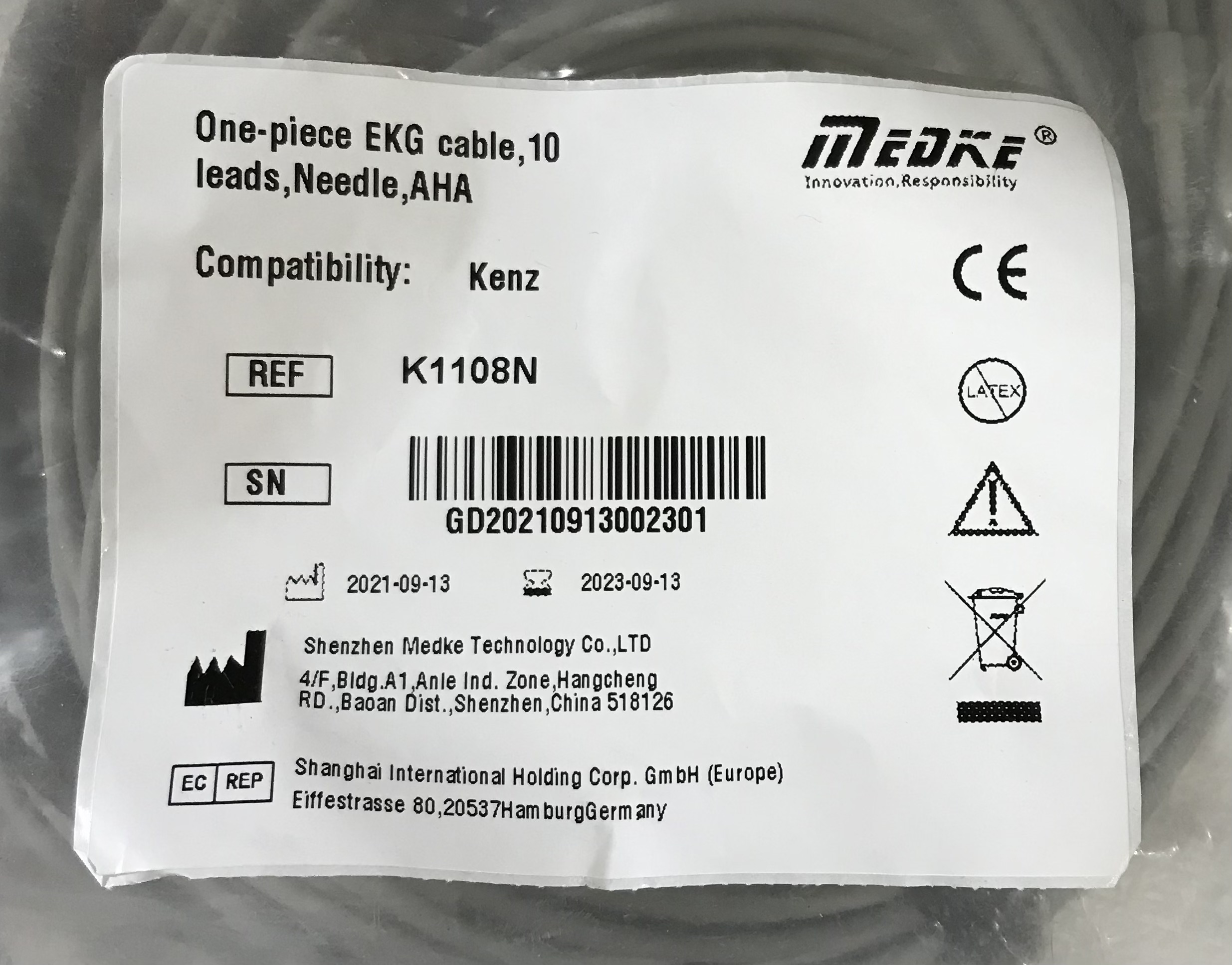 Upgrade or replace your medical monitoring cable with this one-piece 10-lead EKG (ECG) cable, compatible with Kenz and manufactured by Shenzhen Medke Technology Co.