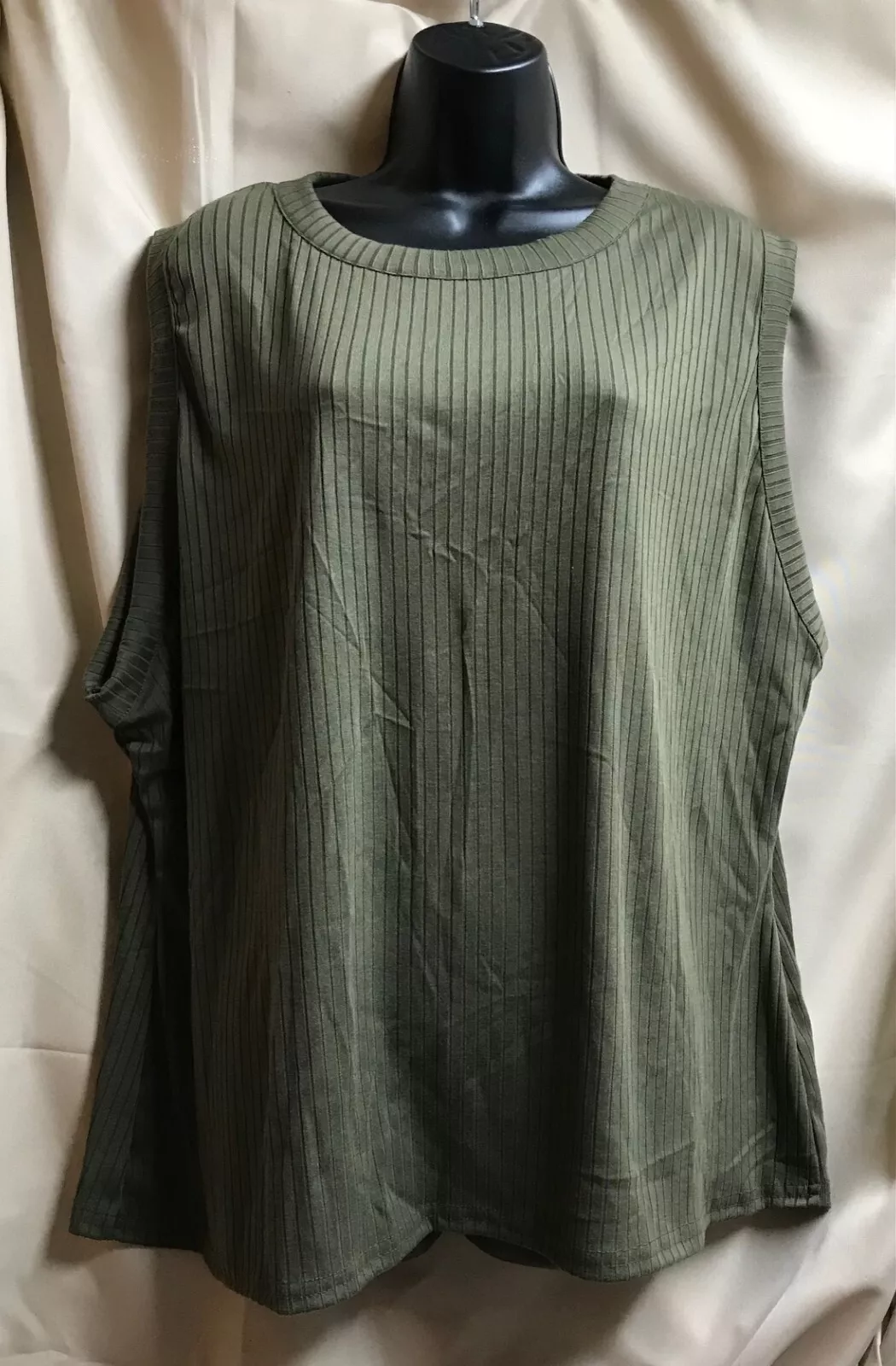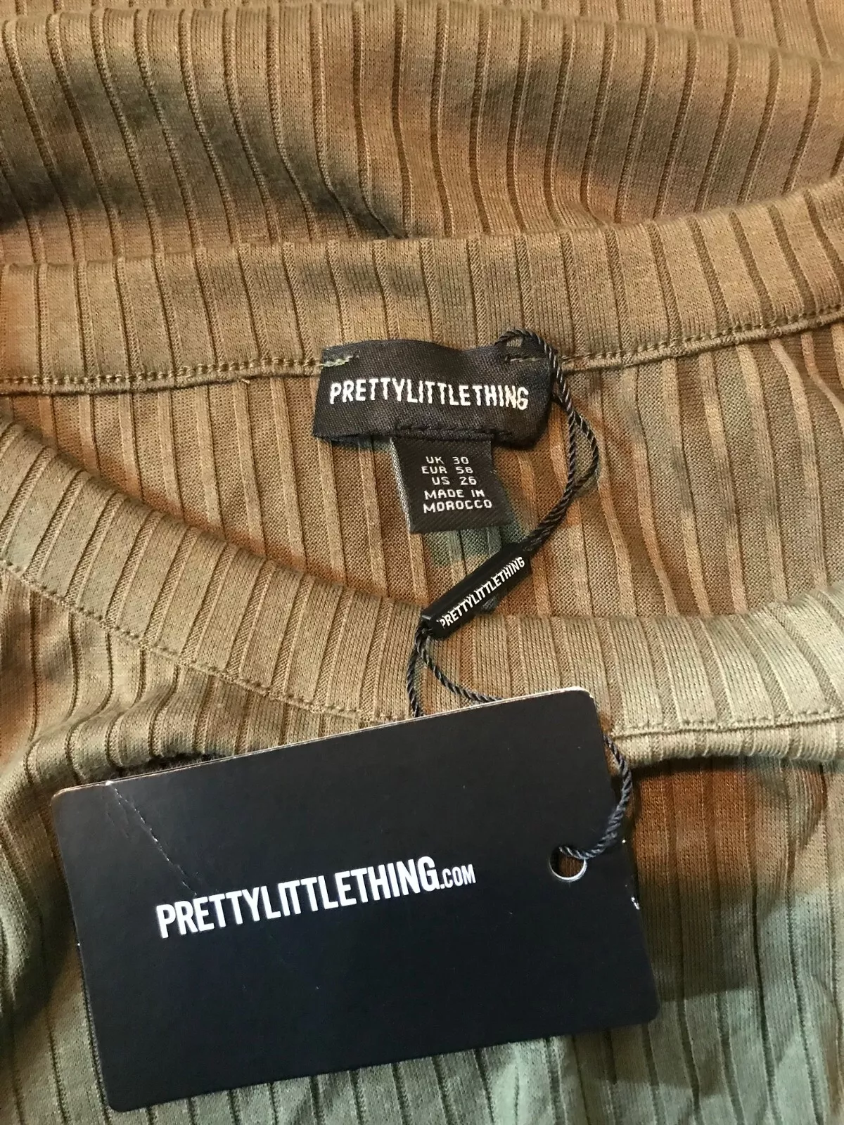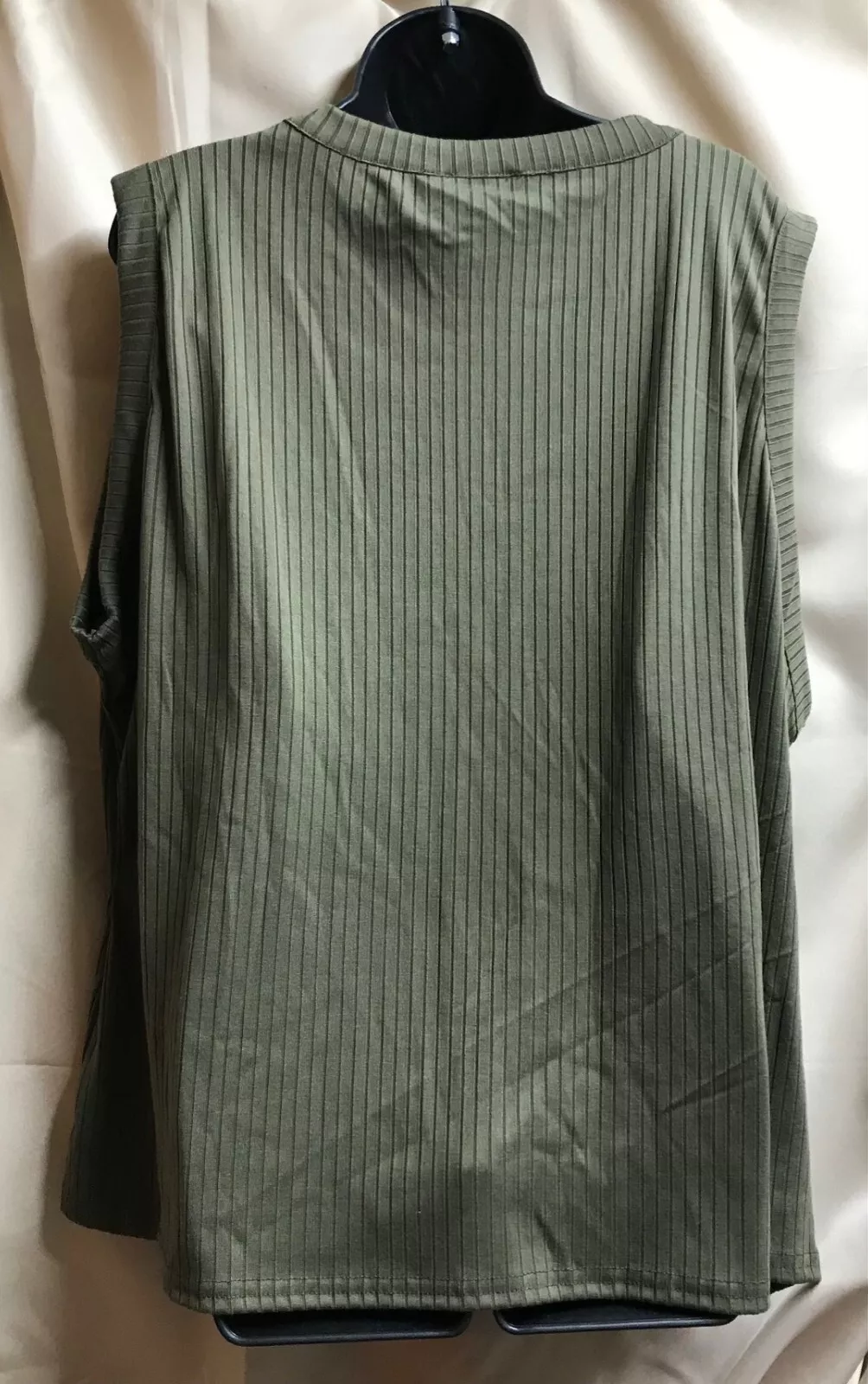 Pretty Little Thing Plus Khaki Green Rib Racer Neck Long Top Sleeveles Sz 26 NEW