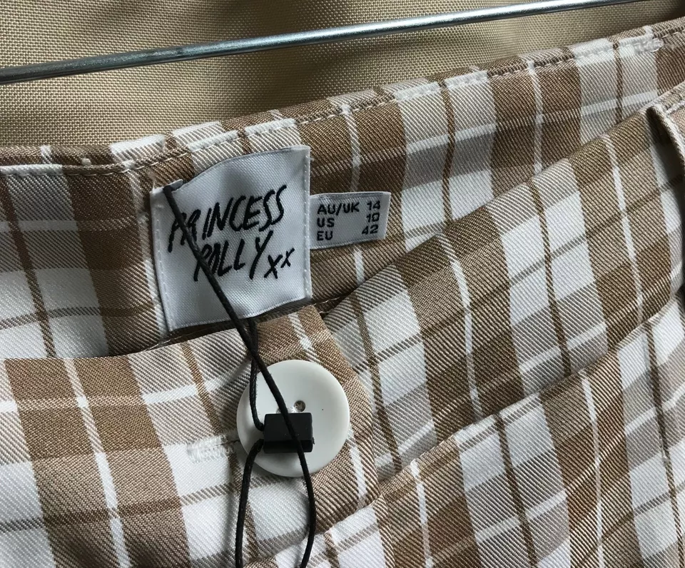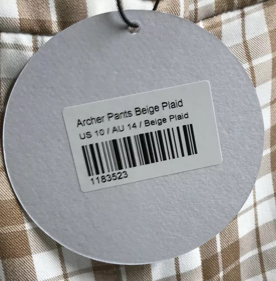 Princess Polly Archer Pants Womens Beige Plaid Sz 10 NEW