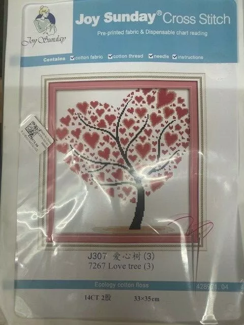 This listing is for a NEW in unopened sealed package.  Joy Sunday Cross Stitch kit # Love Tree….14CT 33x35cm size.