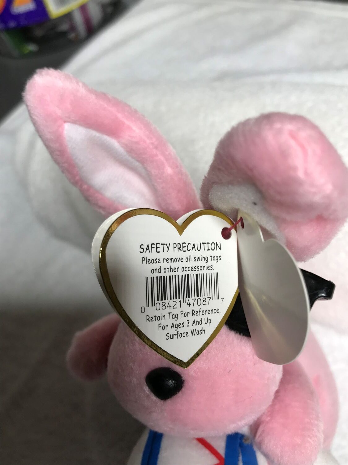 Tags: Both hang tag and tush tag are intact. The front of the hang tag features the white “ty” logo in large letters, with “ORIGINAL” in silver letters and a curved line underneath, and “BEANIE BABIES” with a small white star to the left.
