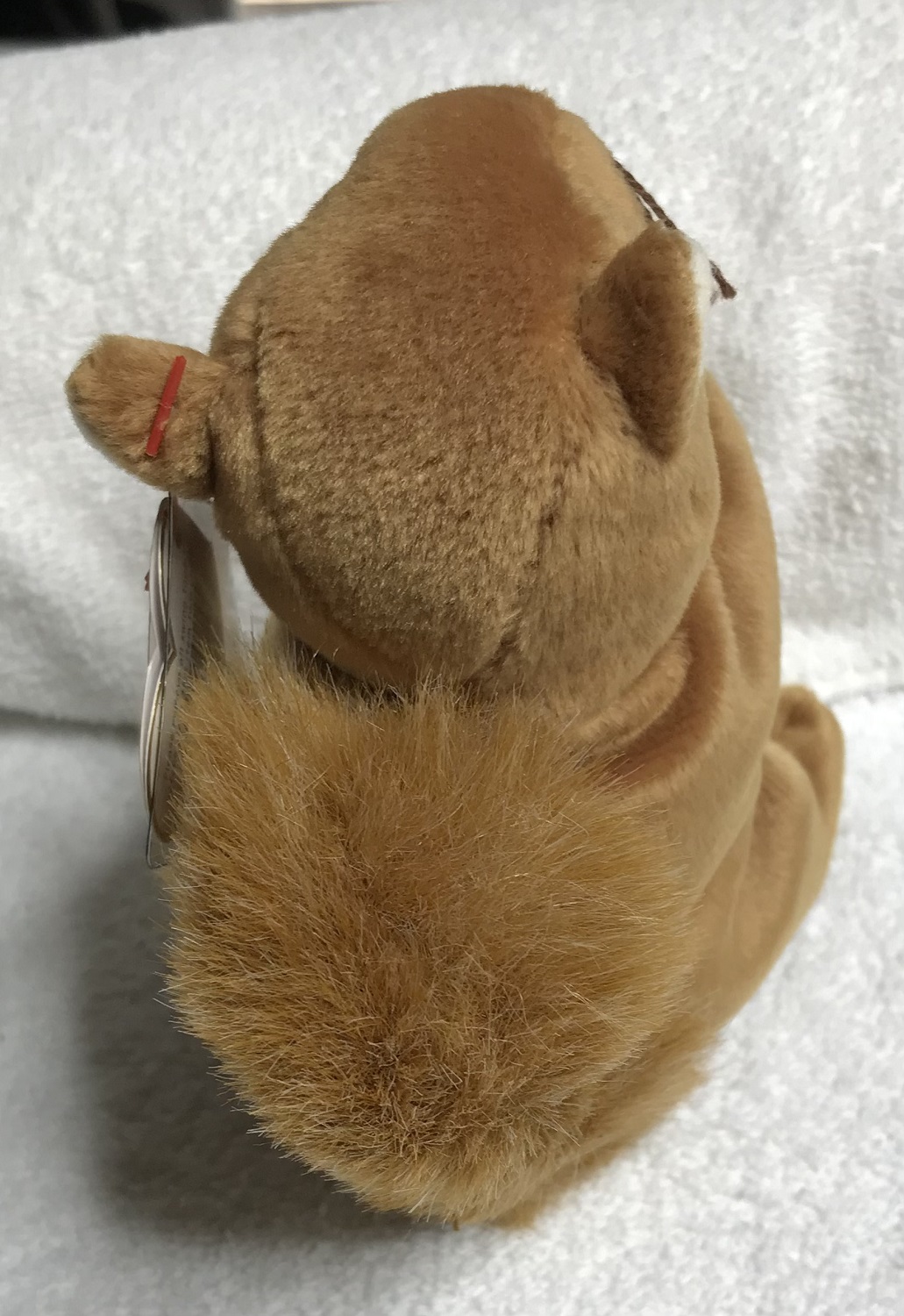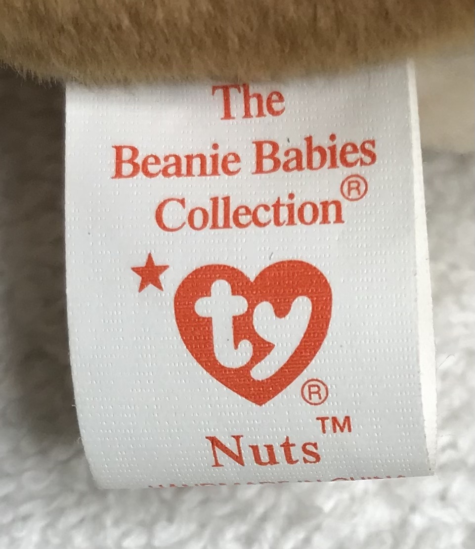 Nuts is a lovable squirrel from The Beanie Babies Collection, originally released in 1996. With his soft brown fur, cream-colored chin and belly, and dark brown plastic eyes and nose, this classic character is full of woodland charm. A perfect piece for collectors!