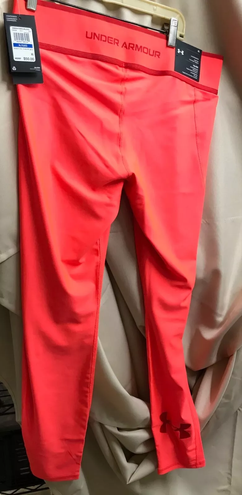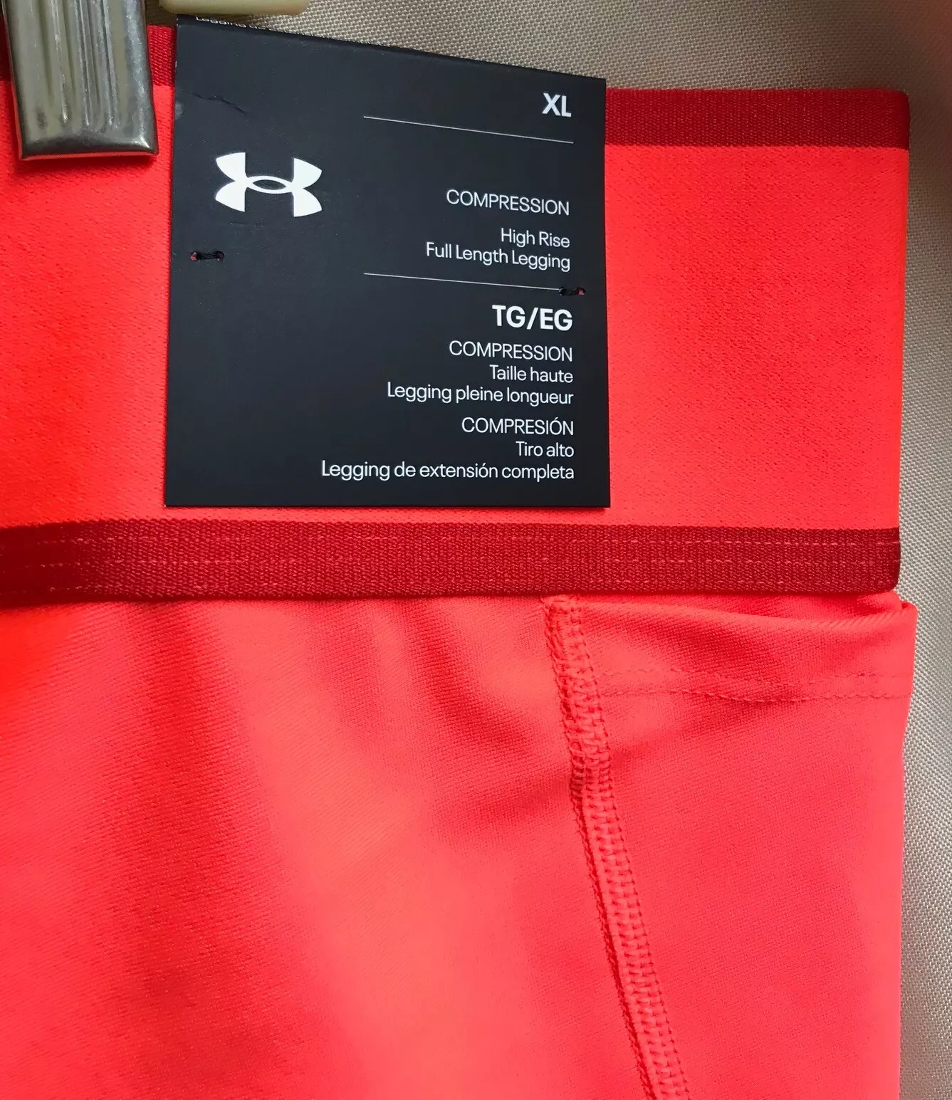 Under Armour Womens Hi-Rise Compression Leggings Red/Pink Clay Sz XL NEW